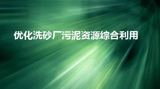 2、环保效益:通过优化洗砂厂污泥资源综合利用,可以达到环保减排的目的,减少对环境的污染负担。