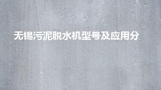 无锡污泥脱水机型号及应用分析