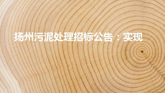 扬州污泥处理招标公告:实现污染减量,共建绿色家园
