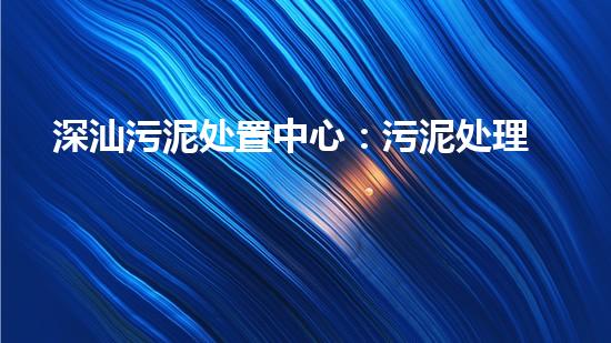深汕污泥处置中心:污泥处理的前沿技术和应用