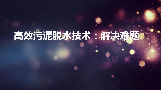 高效污泥脱水技术:解决难题,提升处理效率