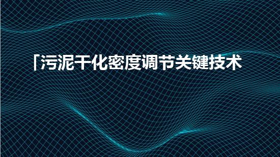 「污泥干化密度调节关键技术」