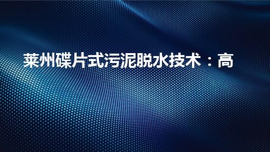 莱州碟片式污泥脱水技术:高效、可靠、环保