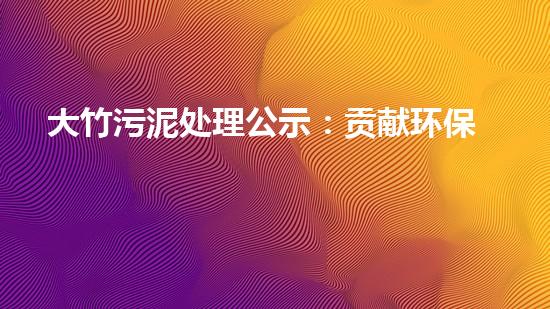 大竹污泥处理公示:贡献环保事业,实现可持续发展!