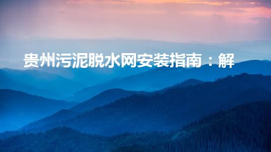 贵州污泥脱水网安装指南:解决环保难题