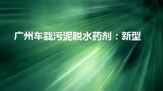 广州车载污泥脱水药剂:新型环保技术治理方案