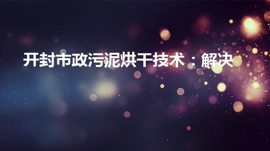 开封市政污泥烘干技术:解决污染难题的尝试