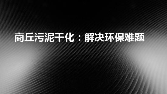 商丘污泥干化:解决环保难题的创新之路