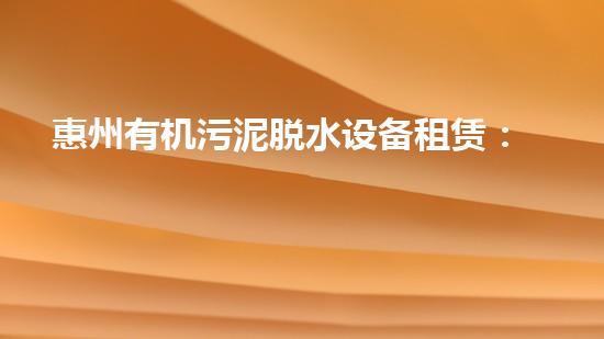 惠州有机污泥脱水设备租赁:快速脱水处理污泥