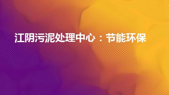 江阴污泥处理中心:节能环保,解决困扰城市的污泥问题!