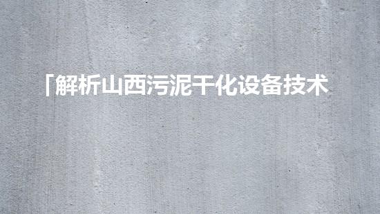 「解析山西污泥干化设备技术及应用」
