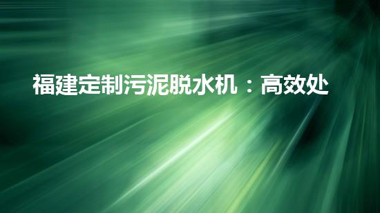 福建定制污泥脱水机:高效处理污泥的最佳选择