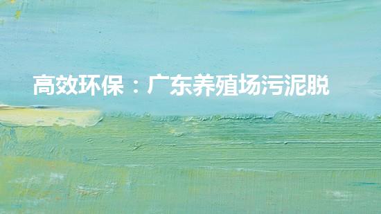 高效环保:广东养殖场污泥脱水机的优势与应用