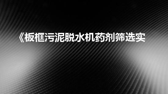 《板框污泥脱水机药剂筛选实验研究》