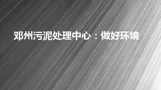 邓州污泥处理中心:做好环境保护,守护健康生活