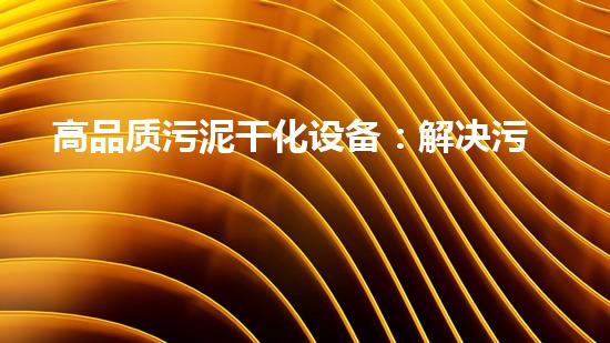 高品质污泥干化设备:解决污泥处理难题