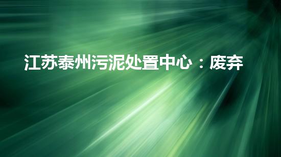 江苏泰州污泥处置中心:废弃物的再生利用之路