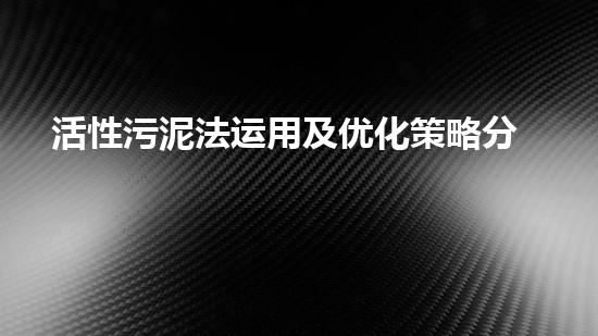 活性污泥法运用及优化策略分析