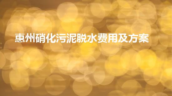惠州硝化污泥脱水费用及方案解析
