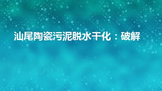 汕尾陶瓷污泥脱水干化:破解产业难题的根本技术