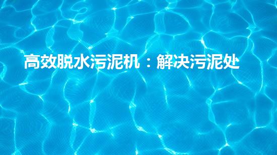 高效脱水污泥机:解决污泥处理难题