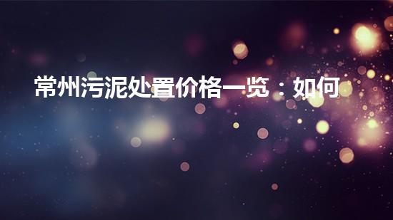 常州污泥处置价格一览:如何选择最经济实惠的处理方法?