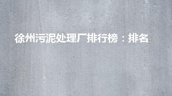 徐州污泥处理厂排行榜:排名、地址、费用一网打尽!