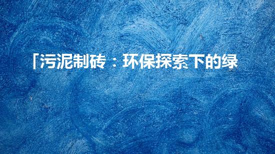 「污泥制砖:环保探索下的绿色革新」