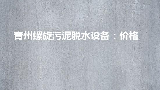 青州螺旋污泥脱水设备:价格分析与推荐