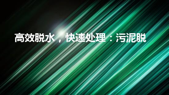 高效脱水,快速处理:污泥脱水机构造优化指南