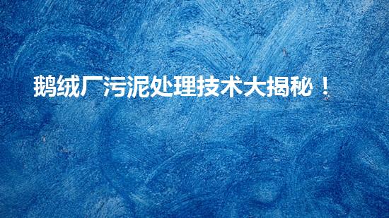 鹅绒产业是一种传统纺织业,在中国南方地区很常见。鹅绒的生产过程中,会产生大量的污泥。这些污泥主要来源于鹅绒的清洗、剪毛和烘干等环节。其中,清洗环节的污泥含有大量有机物质、尘土、沙石等。为了达到环保要求,必须对这些污泥进行处理。
