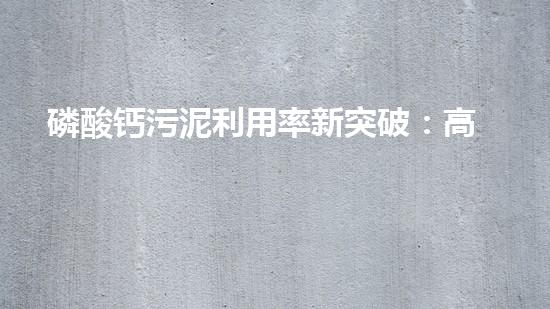 磷酸钙污泥的高效利用一直是一个备受研究的话题,而新的突破已经出现,让污泥得以更好地资源化利用。本文将从多个方面深入阐述磷酸钙污泥高效利用的新突破,为读者提供更加丰富的专业知识。
