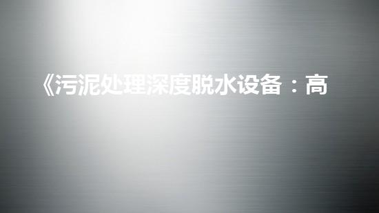 污泥处理深度脱水设备采用先进的物理化学技术,具有迅速将污泥中的水分彻底脱水的优点。处理后的污泥含水量一般可以降到50%以下,这对污泥资源化利用有着非常重要的作用。