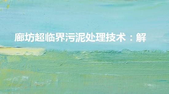 摘要:随着城市化进程的加速,城市污水处理成为了当今社会中必须要面对的难题。因此,开发出高效、低成本的城市污水处理技术,变得至关重要。本文将介绍廊坊超临界污泥处理技术,这种技术以其高效、节能、环保的优点受到了广泛关注。
