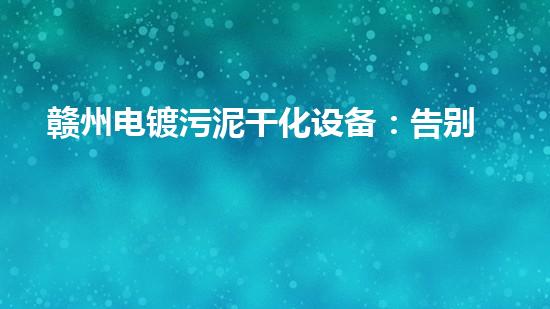随着电镀行业的不断发展,电镀废水和电镀污泥的处理问题日益突出。推广应用新兴的赣州电镀污泥干化设备,不仅可以告别传统处理方式,还能够提高处理效率,达到环保的目的。本文将详细介绍赣州电镀污泥干化设备的优势和应用现状,以期引起读者的兴趣。