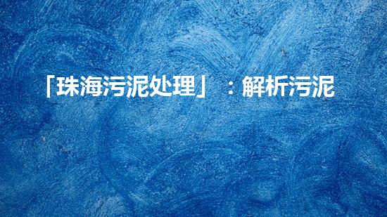 随着珠海市经济的快速发展和人口的逐步增加,污水和污泥的处理问题也逐渐引起了人们的关注。本文将以「珠海污泥处理」:解析污泥及处理方式为中心,分析珠海市污泥的成分和性质以及与之相关的处理方式,主要涵盖生物处理、化学处理和物理处理等方面的内容。文章旨在为读者提供污泥处理方面的知识,帮助读者更好的了解污泥处理及其相关技术。