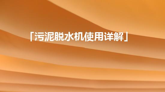 「污泥脱水机使用详解」