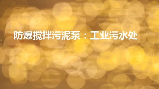 防爆搅拌污泥泵:工业污水处理的最佳选择