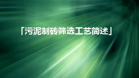 「污泥制砖筛选工艺简述」