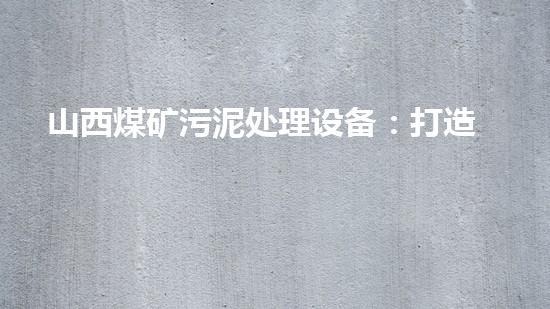 山西煤矿污泥处理设备:打造高效、环保的污泥处理系统