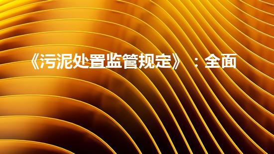 《污泥处置监管规定》:全面规范污泥处置,加强监督管理