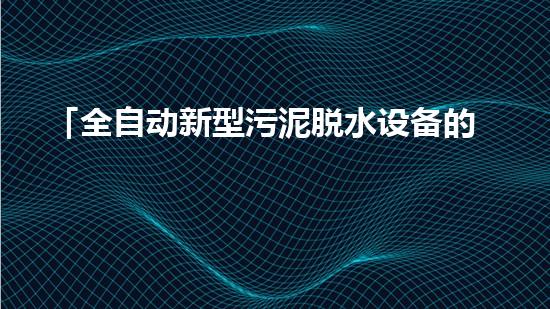 「全自动新型污泥脱水设备的工作原理及应用」