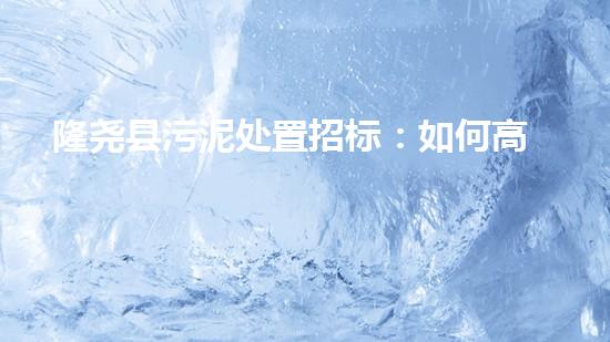 隆尧县污泥处置招标:如何高效、环保地处理污泥?