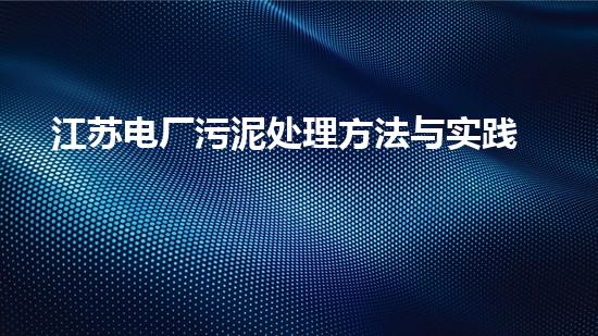 江苏电厂污泥处理方法与实践分享