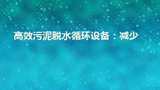高效污泥脱水循环设备:减少环保成本,可持续发展。