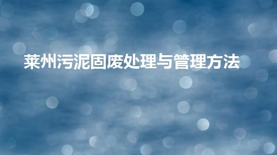 莱州污泥固废处理与管理方法简析
