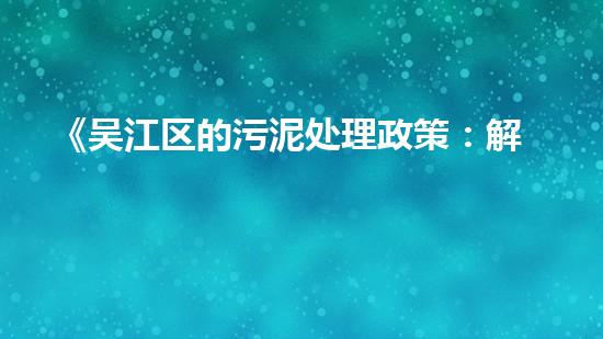 《吴江区的污泥处理政策:解读固废处置新规》