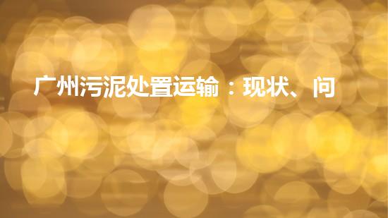 广州污泥处置运输:现状、问题与前景