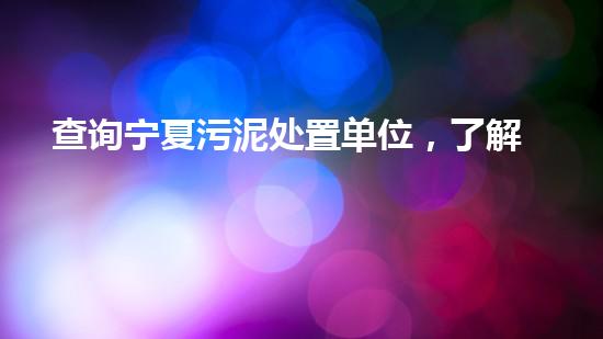 查询宁夏污泥处置单位,了解污泥处理情况