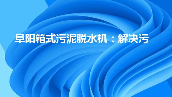 阜阳箱式污泥脱水机:解决污泥处理难题